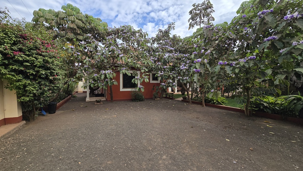 - Mature garden landscaped with palm trees and an outdoor seating area for enjoying the natural scenery