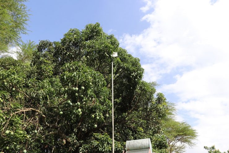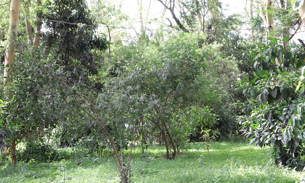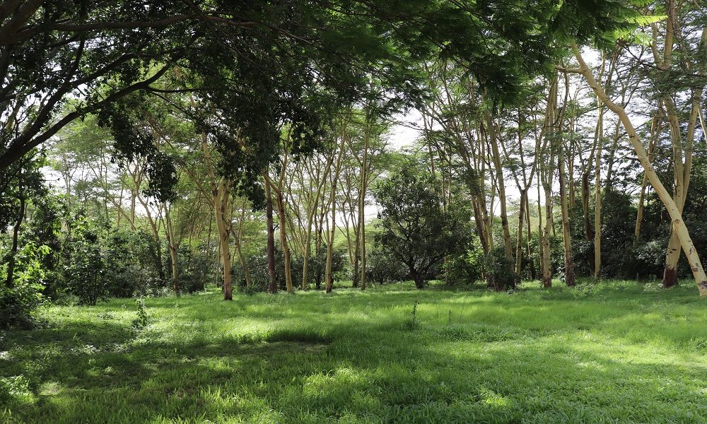 The plot is 4 acres, covered with acacia trees and fenced with natural materials (no brick walls).